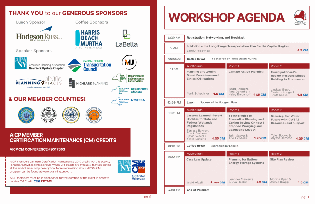 - AICP members will receive Certification Maintenance (CM) credit through a partnership with the New York Upstate Chapter of the American Planning Association.